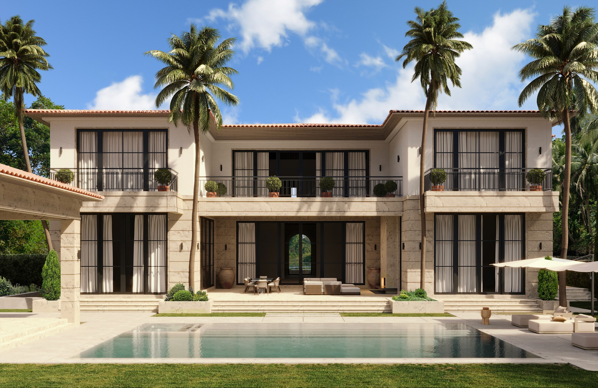 This Miami Beach residence reinterprets Spanish Colonial architecture through a more contemporary lens.